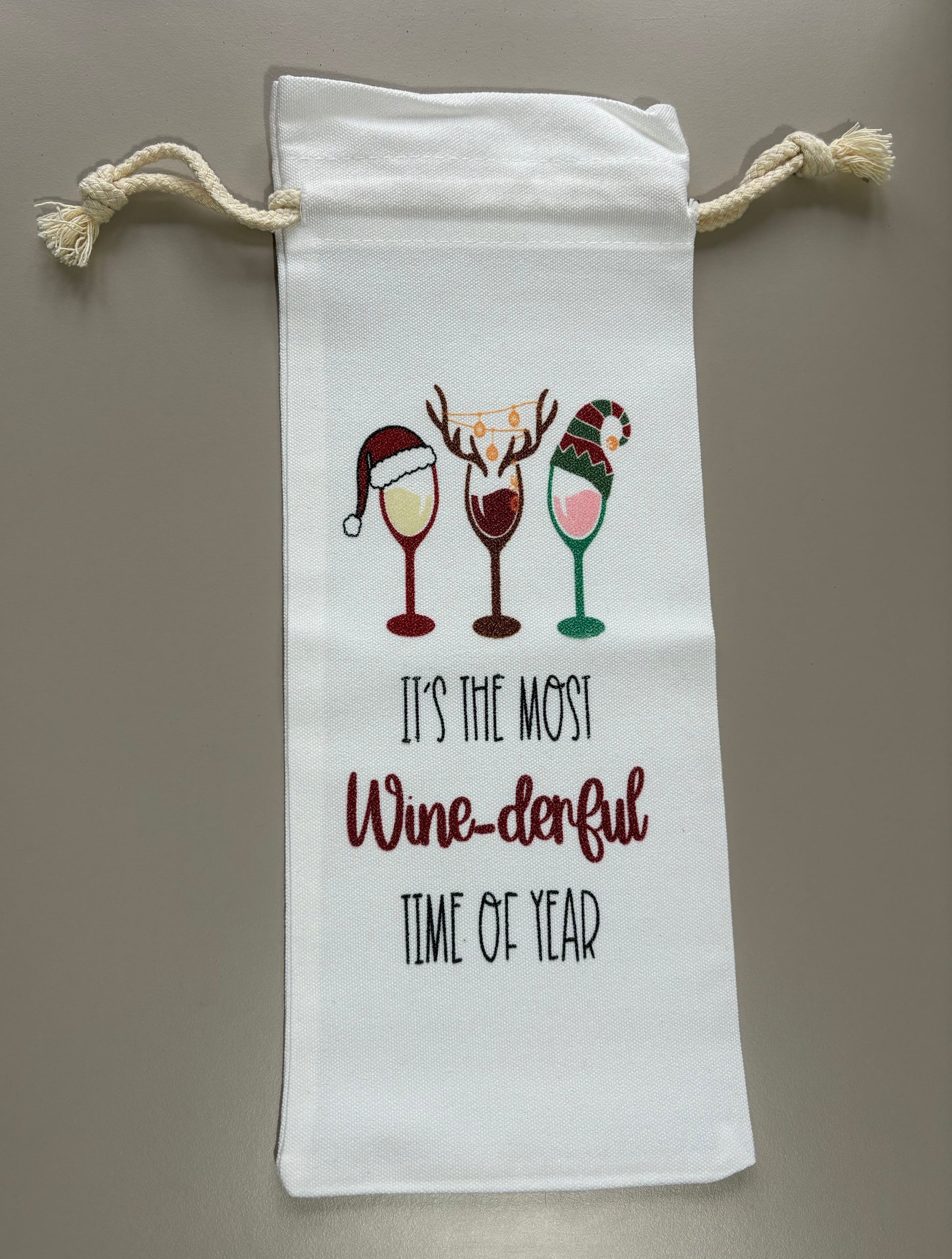 Add a touch of holiday cheer to your gift-giving with our festive drawstring wine bags, available in two charming Christmas designs. Perfect for gifting wine, spirits, or other bottled treats, these reusable bags make presents look extra special while keeping them secure and stylish.