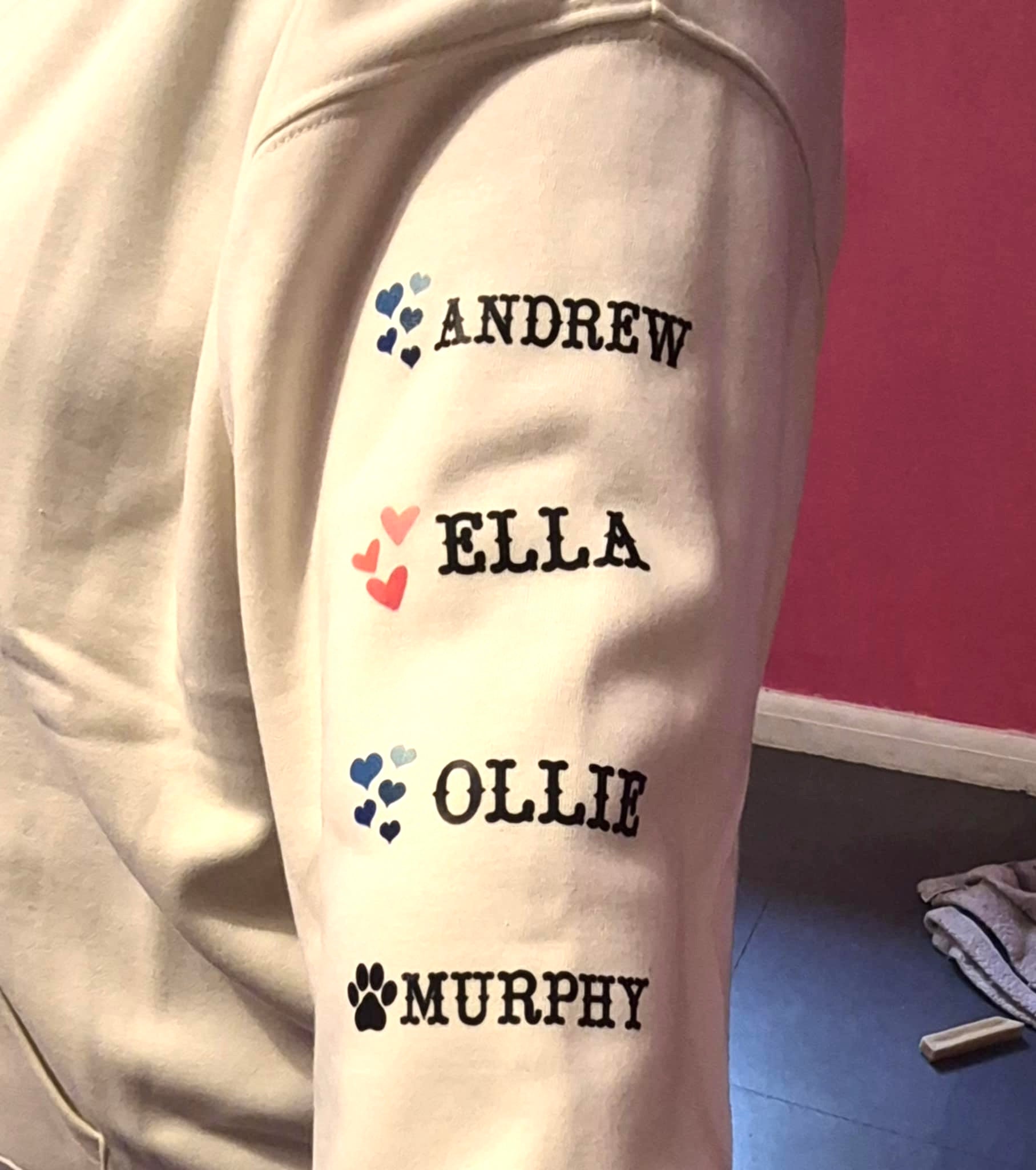 Personalized Hoodie can be any Gender or role from Grandad to Auntie.